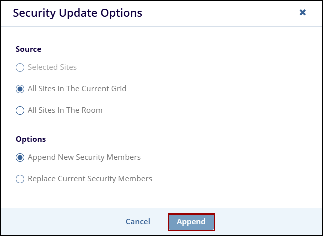 - Once the necessary, click on the Append (for append new security members) or Replace (for