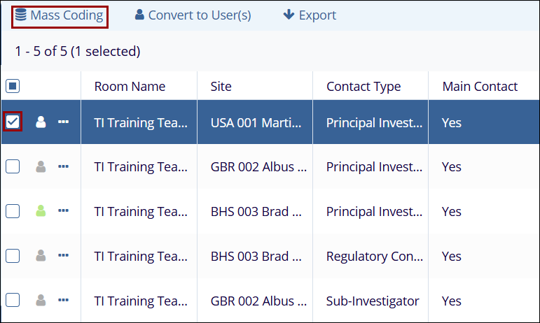 The Mass coding functionality allows users to apply metadata updates in bulk to all or selected contacts.