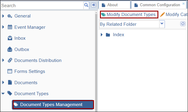 - On the Document Types Management screen, click on the Modify Document Types tab from