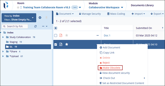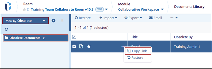 - To view the obsolete documents, set the view to display only the obsolete documents.