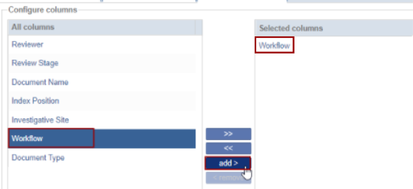 - Expand the arrow available beside the Workflow and double-click to add the columns