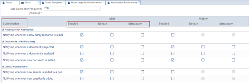 - Default: This subscribes all users to the related notification by default but with the possibility to unsubscribe.