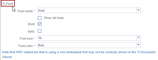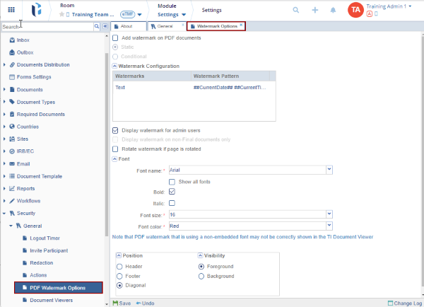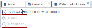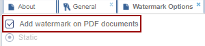 - The Add watermark on PDF documents checkbox is enabled the ‘Display watermark on