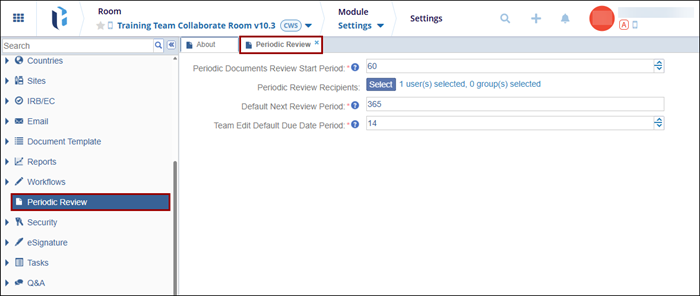 - Within the Periodic Review tab, configure the following settings by defining the number of