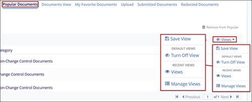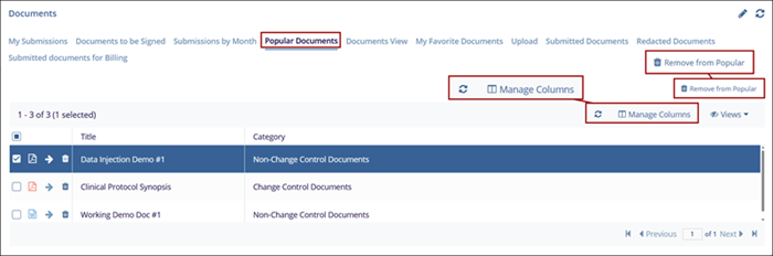 - To remove a selected document from the Popular document list, click on the Remove from Popular button on the top right side of the Document dashboard.