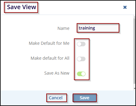 - Click the Save button to save the current view, If the user decides not to save the view, click the Cancel button to discard changes.