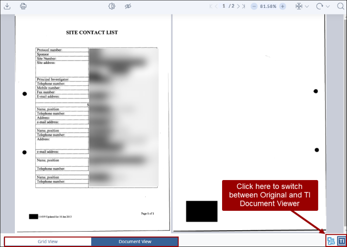 - Click on the Document View tab at the bottom of the grid. The Document and viewed in the