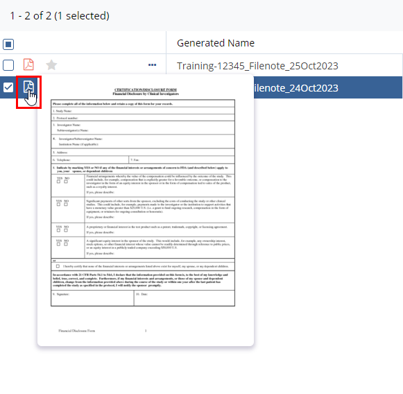 Note: Documents can also be previewed by hovering over the document icon within the grid view as in the screenshot below.