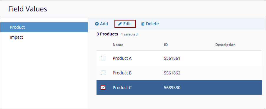 - Select a product to edit and click on the Edit button from the top menu bar.