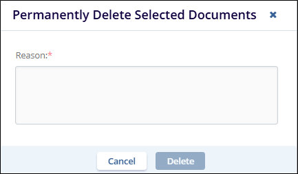 4. Mandatorily provide a reason on the Permanently Delete Selected Documents popup.
