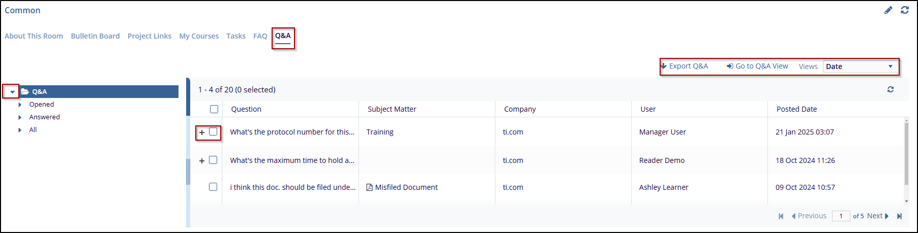 - Navigate to the Common dashboard, and click on the Q&A tab.