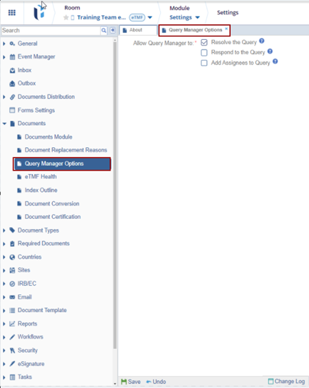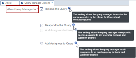 Query Managers in Trial Interactive are users with permission to view all QC Workflow-related queries in the room and provide assistance as needed. The specific actions a Query Manager can perform are determined by the settings configured here. By selecting the appropriate checkboxes, room administrators can grant Query Managers the ability to resolve queries and/or respond to queries assigned to any user.