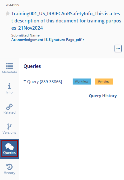 This tab is visible only if a query is assigned to the users. Users can perform all query-related activities from the metadata panel.
