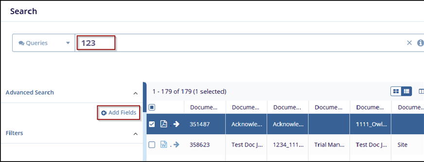 - If needed, click on Advanced Search and Add Fields to refine your search further, such as adding filters for document status or type.