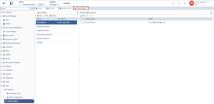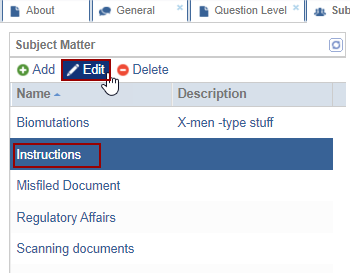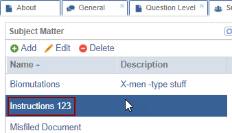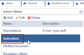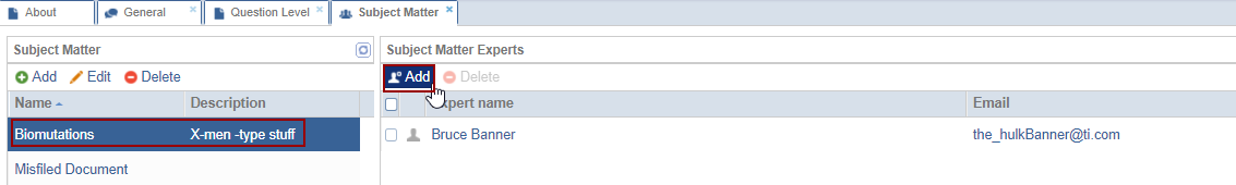 - Click the Name of the Subject Matter and click the Add button from the Subject Matter Experts panel toolbar.