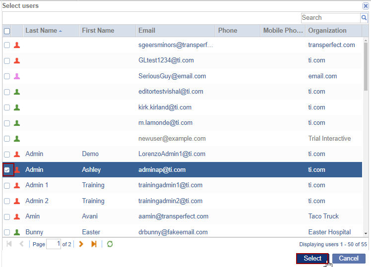 - Click the checkbox next to the name of the user you want to assign to the expert role.