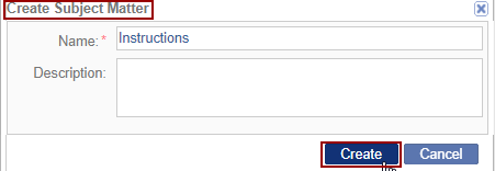 - The Create Subject Matter window opens. Refer to the screenshot below: