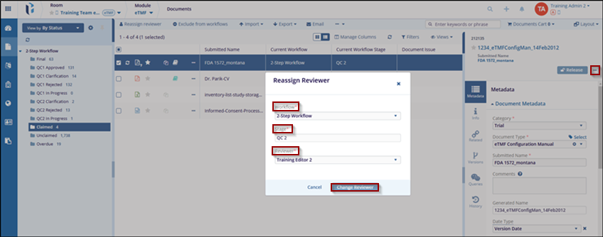 - Choose the appropriate reviewer and click the Change Reviewer button.