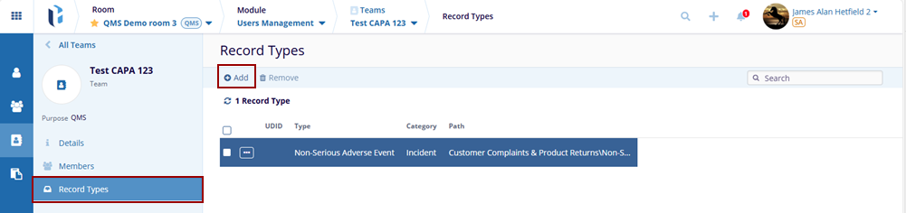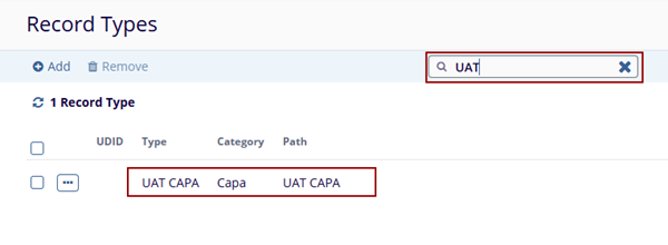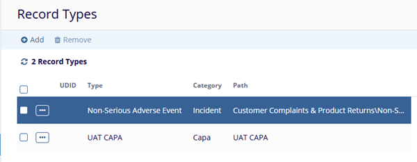- The selected record type from the chosen category is displayed on the Record Types page.
