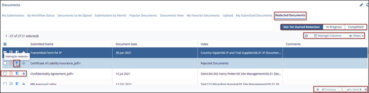 - In the Documents Dashboard, select the Redacted Document tab, where documents undergoing redaction are listed.