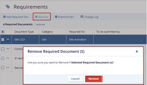 - The Remove Required Document(s) with the Cancel and Remove buttons.