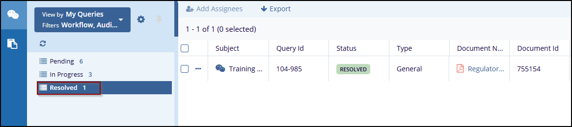 Resolved A Resolved folder contains queries that have been completed and marked as resolved. No further action is required.