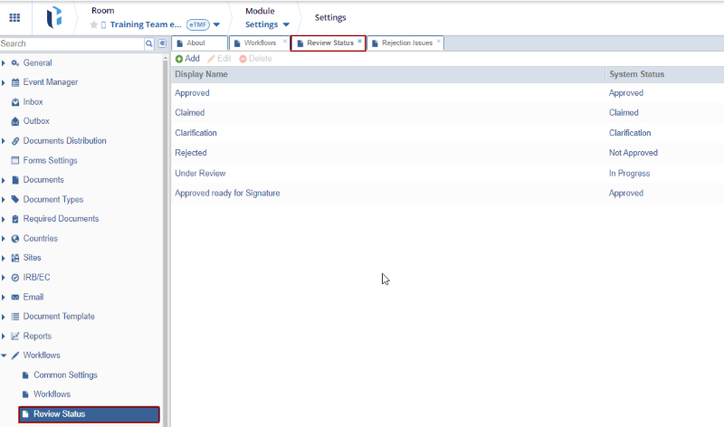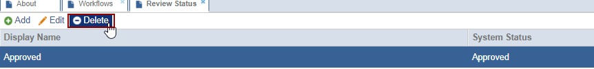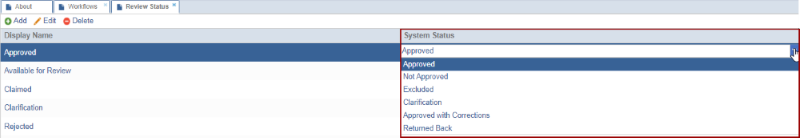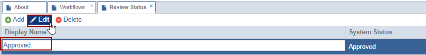 - Select the required Review Status/Display Name to be edited and click Edit.
