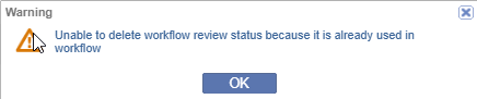 - If the selected status is in use within a workflow, a pop-up dialog will appear. If the