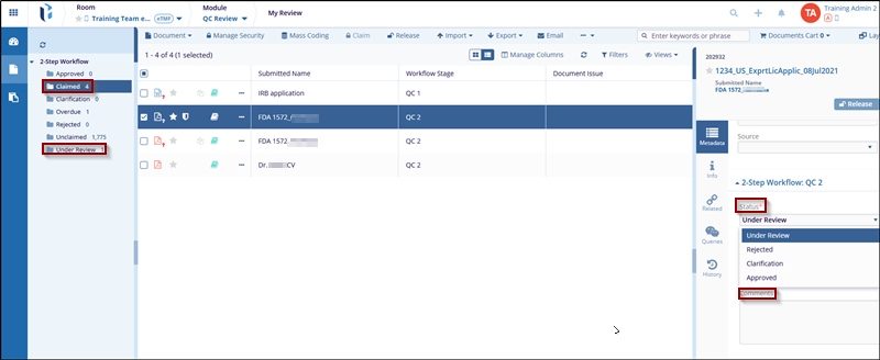 - Clarification: This indicates that the QC Workflow reviewer the user
