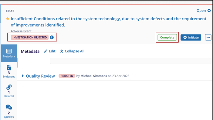 - To proceed further, the user needs to check the QA feedback and update the incident with the required evidence.