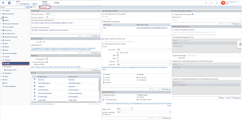 Most of the room's Security Settings are established at the start of the study and remain unchanged throughout its duration. Any changes made to these settings should be communicated to the Project Manager to ensure they are included in the Change Log.