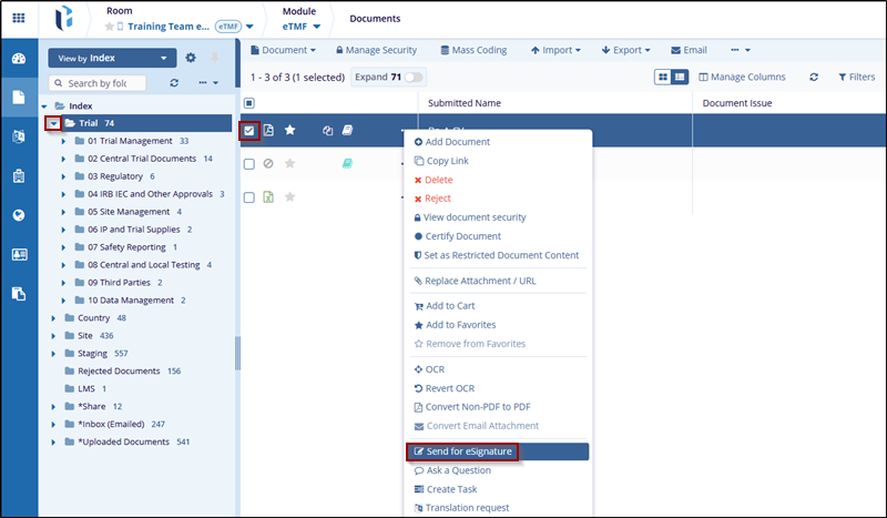 - Select the Send for eSignature option, this will open the Send for eSignature window.