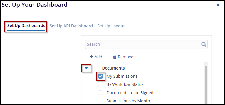 - On the Set Up Your Dashboard window, click on the Set-Up Dashboard tab and expand