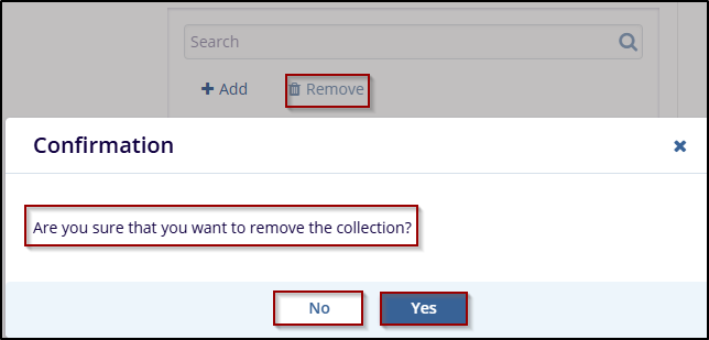 - Click Yes to confirm and remove the collection or click No to cancel the