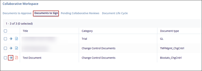 - Navigate to the Documents to Sign tab within the Collaborative Workspace dashlet.