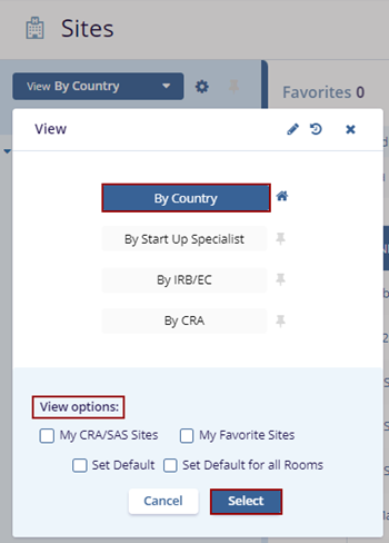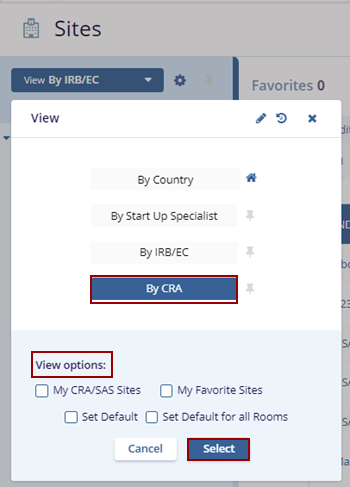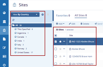 - On the left side of the Sites screen in the index panel click the View By drop-down arrow.
