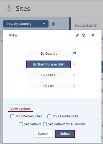- Select the By Start Up Specialist view, optionally check the desired ‘View Options’ at