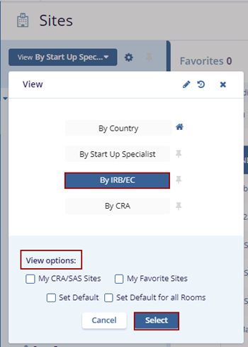 - Select the By IRB/EC view, optionally check the desired ‘View Options’ at the bottom of