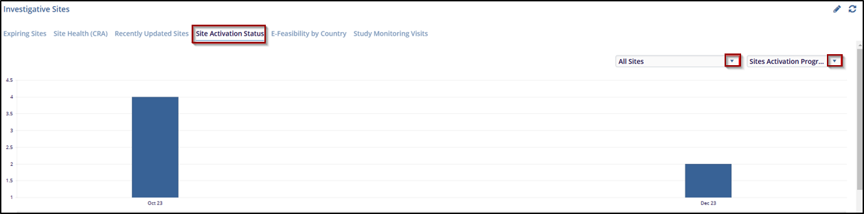 - In the second dropdown menu, choose the desired Site Activation Progress type to adjust the chart based on specific activation criteria or milestones.