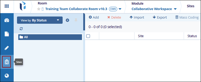 To access the Sites modal in the Collaborative Workspace, follow the steps below.