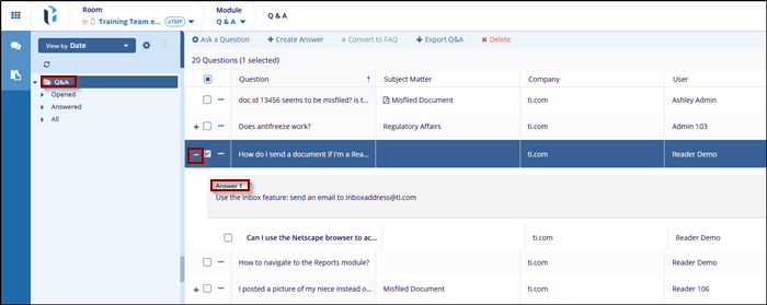 - Navigate to the Q&A module, select Q&A section from the left vertical menu.