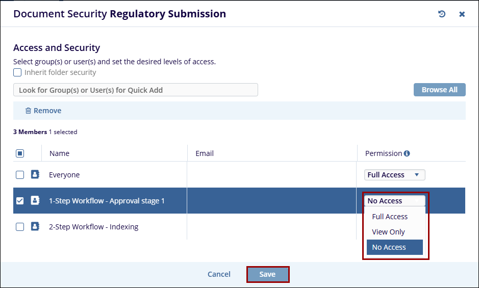 appropriate access level, such as Full Access, View Only, or No Access and click on the Save