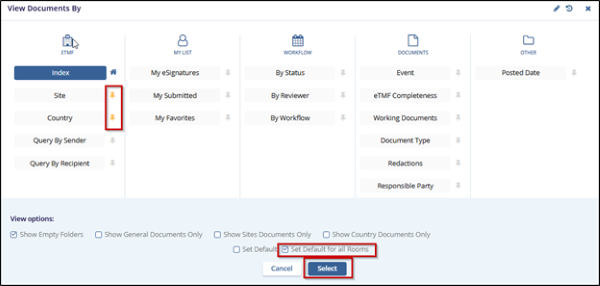 Document Type | Displays documents grouped by Trial, Country and Site. |