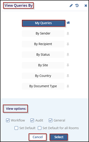 - Select the checkbox as per the user requirement from the View Options section on the View Queries By pop-up window.
